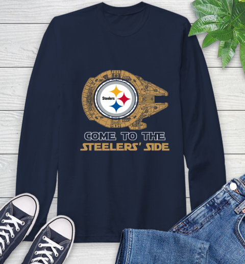 Wear NFL Come To The Pittsburgh Steelers Wars Football Sports Long Sleeve T-Shirt to the game, to a Star Wars movie marathon, or just out and about to show off your dual fandom. They’re a fun, fantastic way to showcase your love for both the NFL and Star Wars. May the force be with your team!