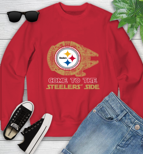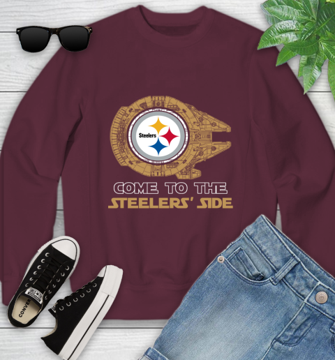 Wear NFL Come To The Pittsburgh Steelers Wars Football Sports Youth Sweatshirt to the game, to a Star Wars movie marathon, or just out and about to show off your dual fandom. They’re a fun, fantastic way to showcase your love for both the NFL and Star Wars. May the force be with your team!