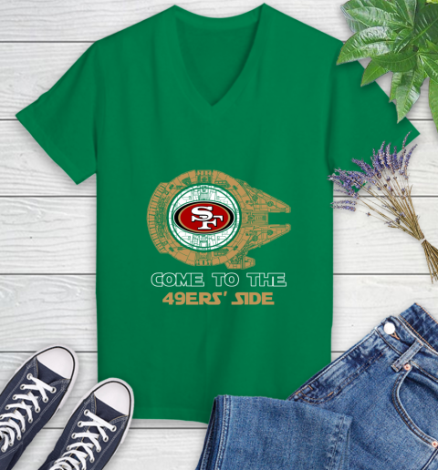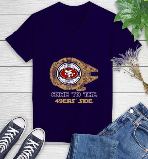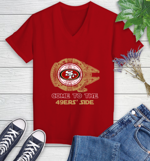 Wear NFL Come To The San Francisco 49ers Star Wars Football Sports Women’s V-Neck T-Shirt to the game, to a Star Wars movie marathon, or just out and about to show off your dual fandom. They’re a fun, fantastic way to showcase your love for both the NFL and Star Wars. May the force be with your team!