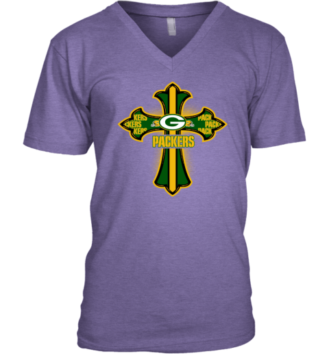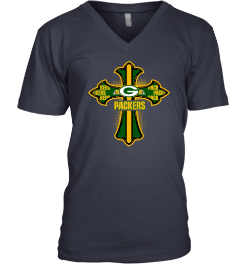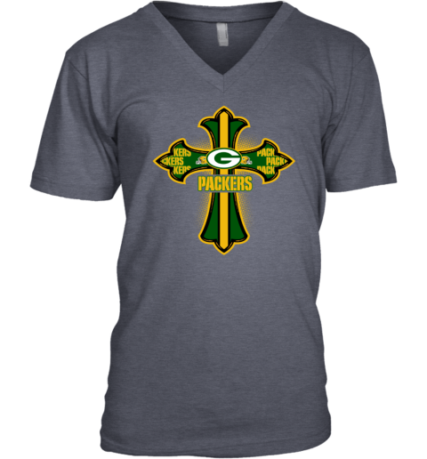 NFL Green Crusader Cross Green Bay Packers V-Neck T-Shirt