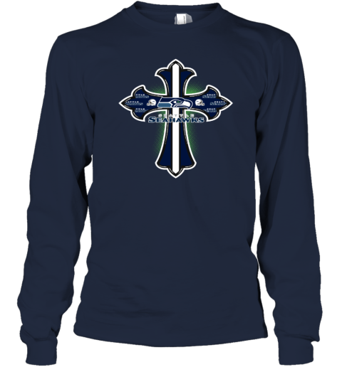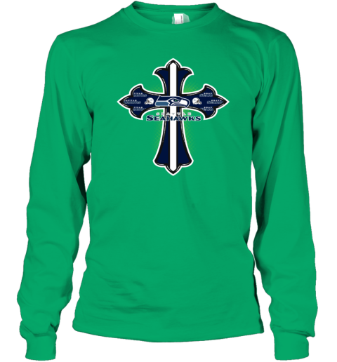 NFL Green Crusader Cross Seattle Seahawks Long Sleeve T-Shirt
