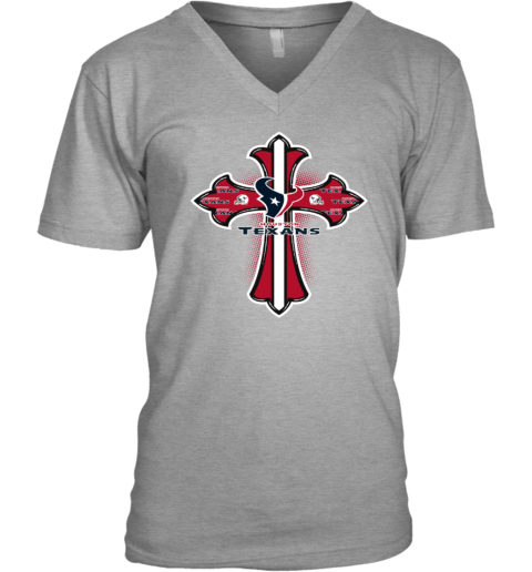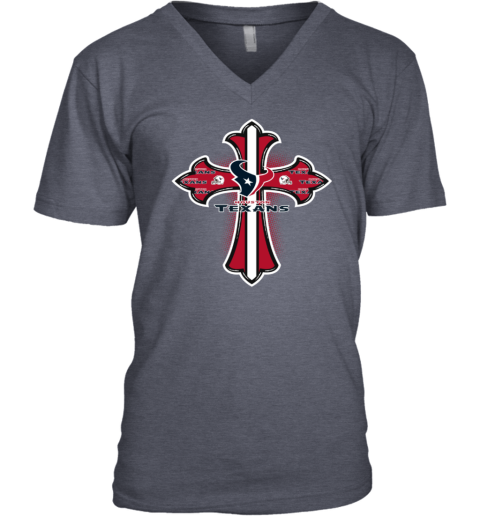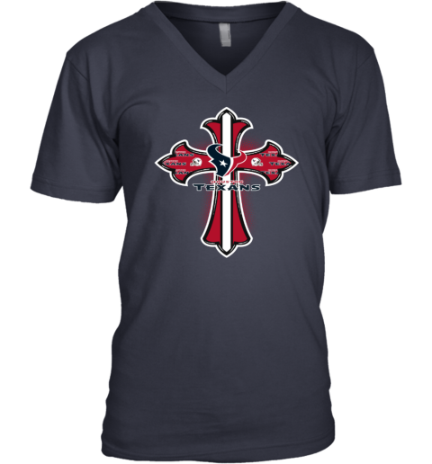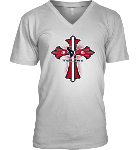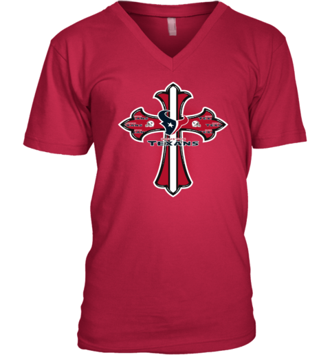 NFL Orange Crusader Cross Houston Texans V-Neck T-Shirt