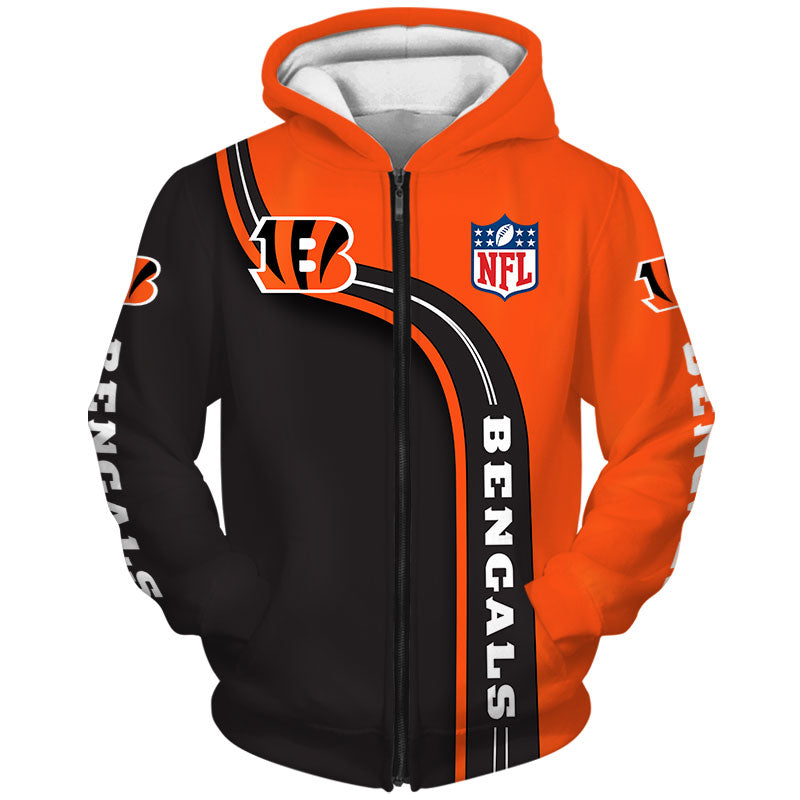 NFL Printed Cincinnati Bengals Hoodie 3D Highway Letter Bengals are perfect for showing off your team pride. They feature a 3D logo of the team on the front and can be customized with a name, number, or message. The hoodie is made from comfortable polyester material that’s lightweight but still warm enough to keep you cozy during those cold winter days.
