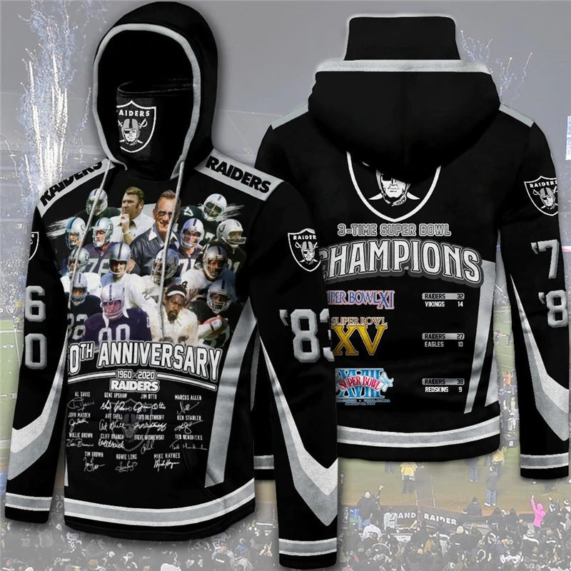 NFL Printed Las Vegas Raiders Hoodies 3 Times Super Bowl Champions