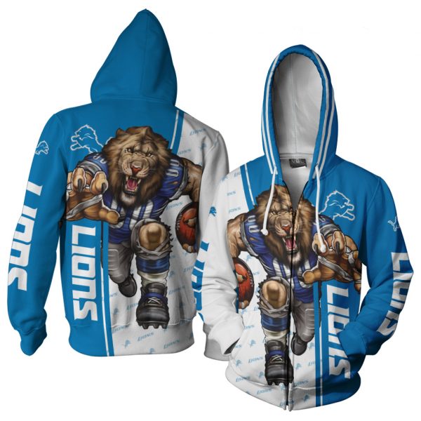 NFL Printed Men’s Detroit Lions Hoodies Mascot 3D Ultra Cool