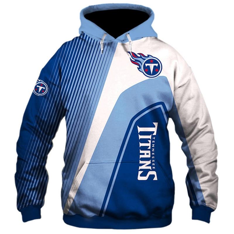 NFL Printed Men’s Tennessee Titans Hoodies Sale 3D Sweatshirt Pullover are perfect for showing off your team pride. They feature a 3D logo of the team on the front and can be customized with a name, number, or message. The hoodie is made from comfortable polyester material that’s lightweight but still warm enough to keep you cozy during those cold winter days.
