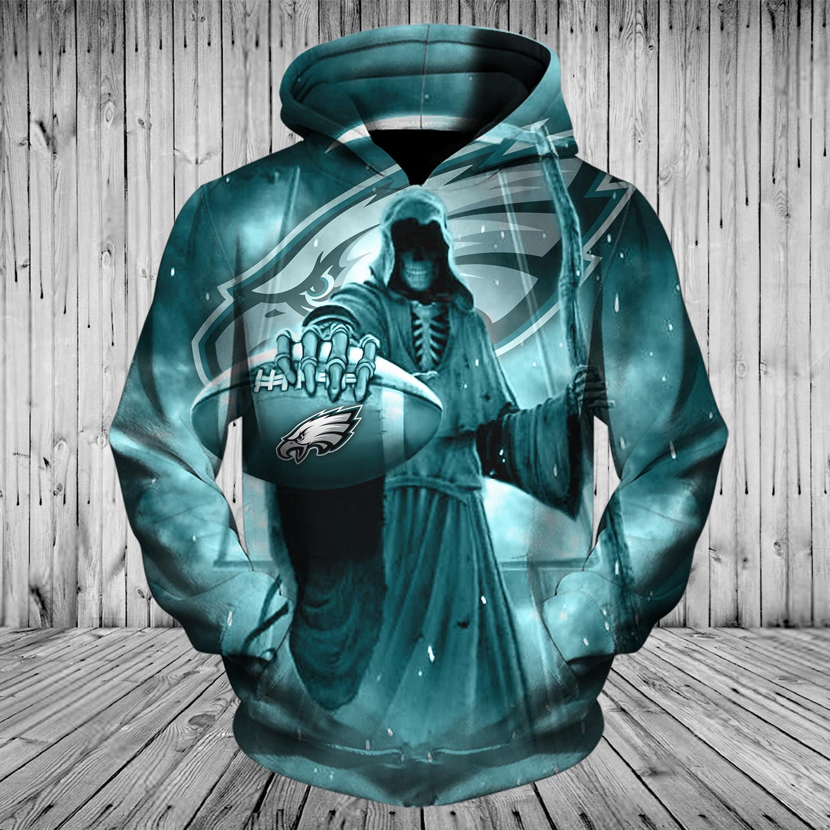NFL Printed Philadelphia Eagles Zip Up Hoodies 3D Death Skull Hoodies