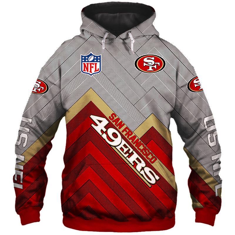 NFL Printed San Francisco 49ers Hoodies Sale 3D Sweatshirt Pullover Zip Up are perfect for showing off your team pride. They feature a 3D logo of the team on the front and can be customized with a name, number, or message. The hoodie is made from comfortable polyester material that’s lightweight but still warm enough to keep you cozy during those cold winter days.