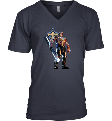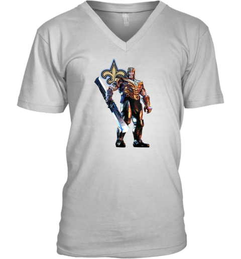 NFL Thanos Marvel Avengers Endgame Football New Orleans Saints V-Neck T-Shirt
