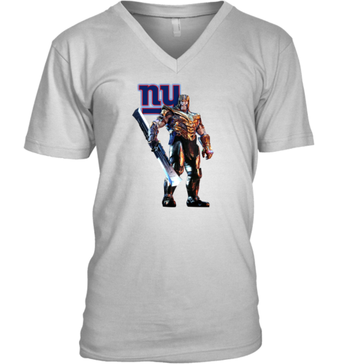 NFL Thanos Marvel Avengers Endgame Football New York Giants V-Neck T-Shirt