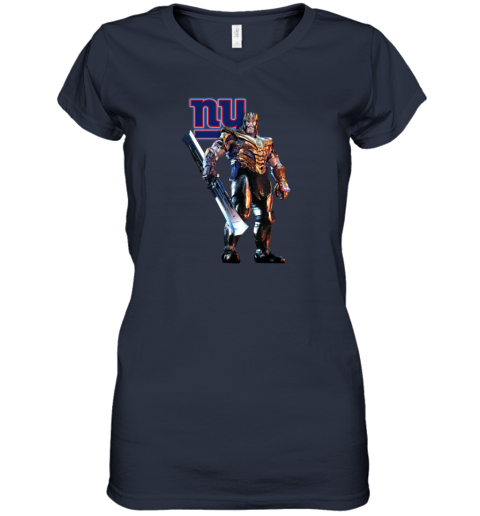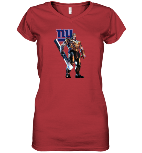 NFL Thanos Marvel Avengers Endgame Football New York Giants Women's V-Neck T-Shirt
