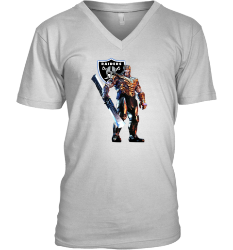 NFL Thanos Marvel Avengers Endgame Football Oakland Raiders V-Neck T-Shirt