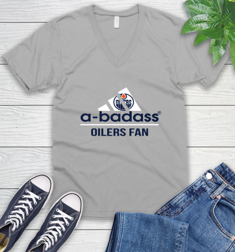 NHL A Badass Edmonton Oilers Fan Adidas Hockey Sports V-Neck T-Shirt