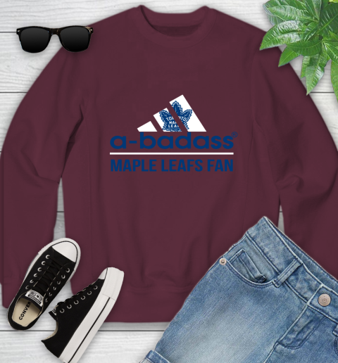 NHL Fans Shirts are for the die-hard hockey enthusiasts who live and breathe the sport. They’re for the fans who rise to their feet, holding their breath in the final seconds of a tie game. “NHL A Badass Toronto Maple Leafs Fan Adidas Hockey Sports Youth Sweatshirt†are for the ones who proudly wear their team’s colors, whether at the rink, at home, or out on the town.