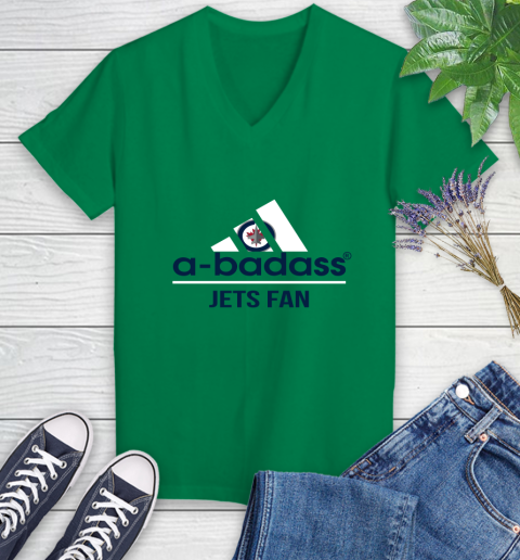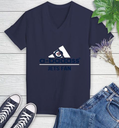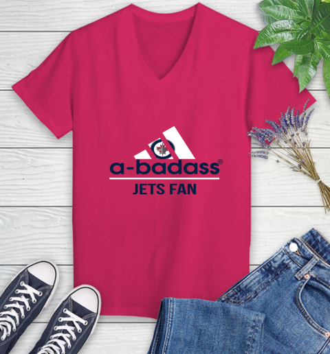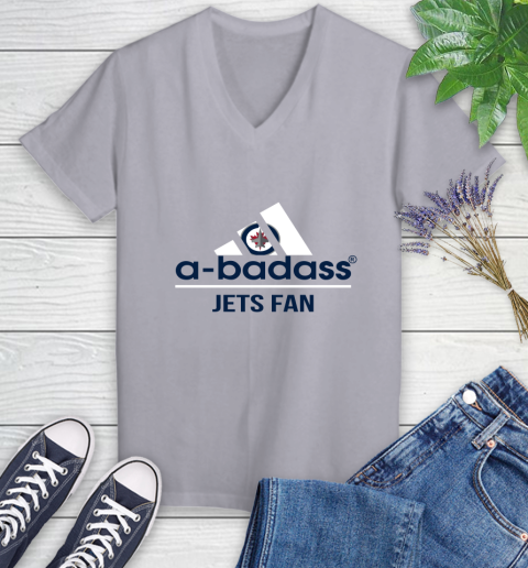 NHL A Badass Winnipeg Jets Fan Adidas Hockey Sports Women’s V-Neck T-Shirt