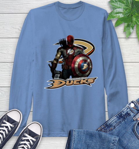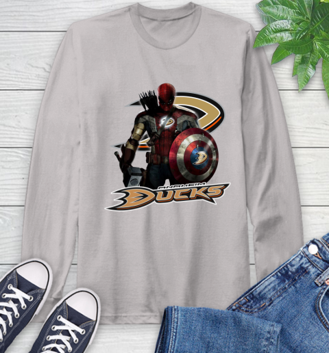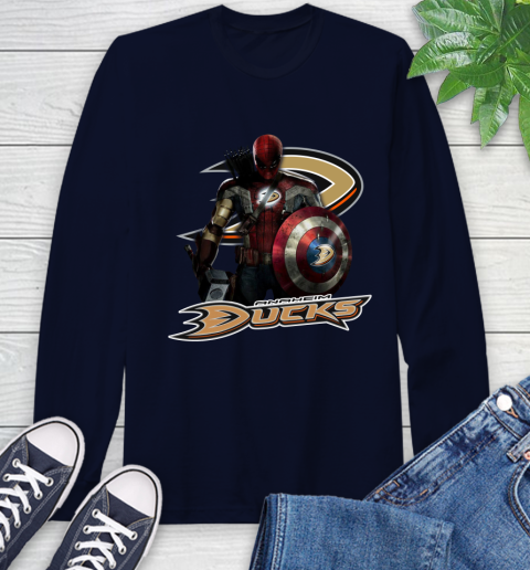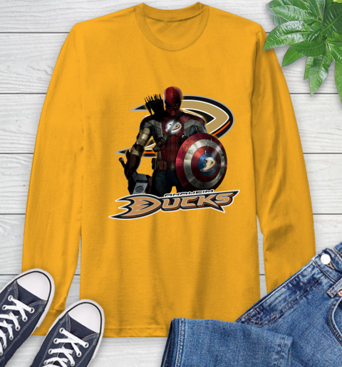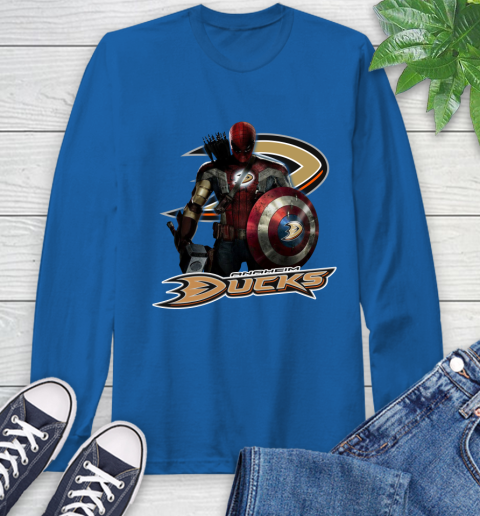 NHL Captain America Thor Spider Man Hawkeye Avengers Endgame Hockey Anaheim Ducks Long Sleeve T-Shirt