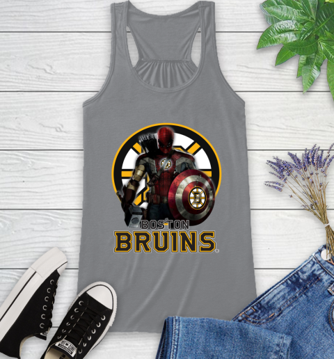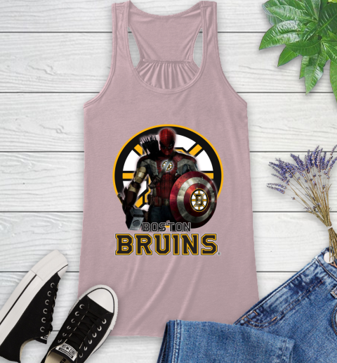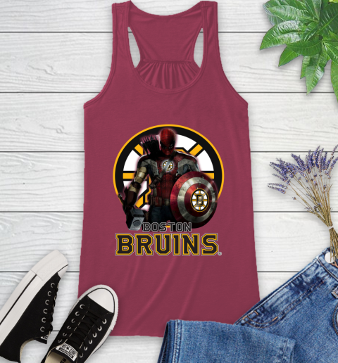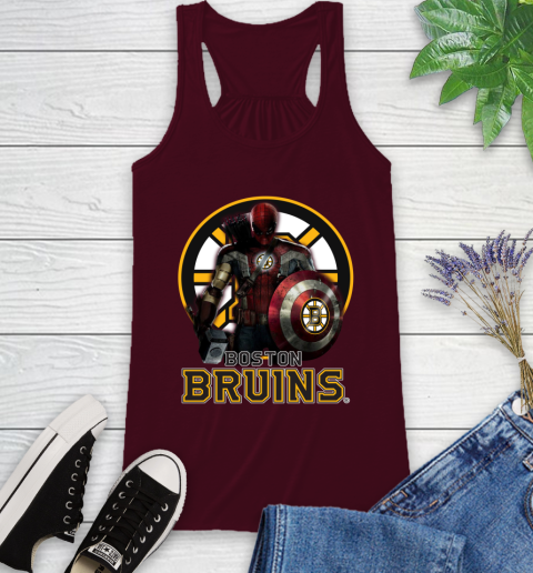NHL Captain America Thor Spider Man Hawkeye Avengers Endgame Hockey Boston Bruins Racerback Tank