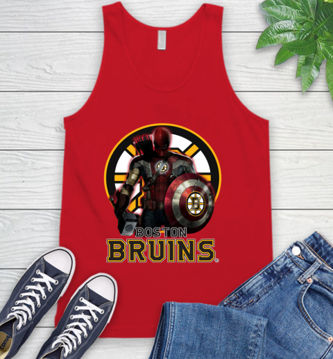 NHL Captain America Thor Spider Man Hawkeye Avengers Endgame Hockey Boston Bruins Tank Top