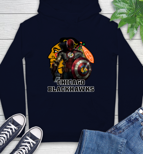 NHL Captain America Thor Spider Man Hawkeye Avengers Endgame Hockey Chicago Blackhawks Hoodie