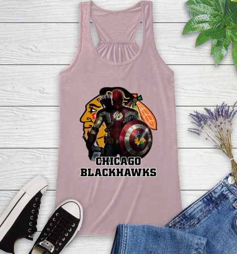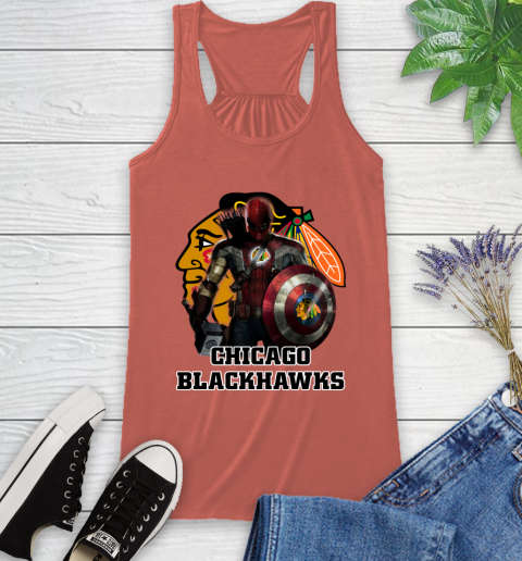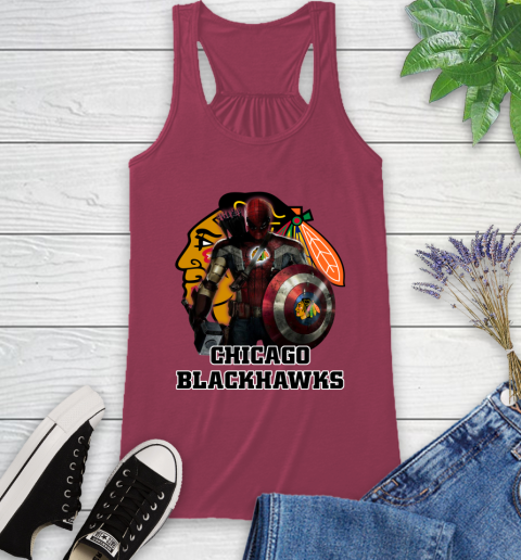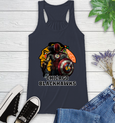 NHL Captain America Thor Spider Man Hawkeye Avengers Endgame Hockey Chicago Blackhawks Racerback Tank