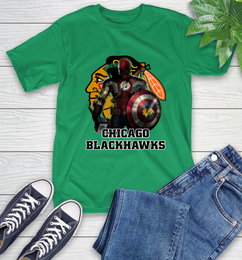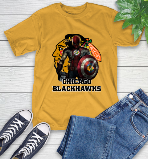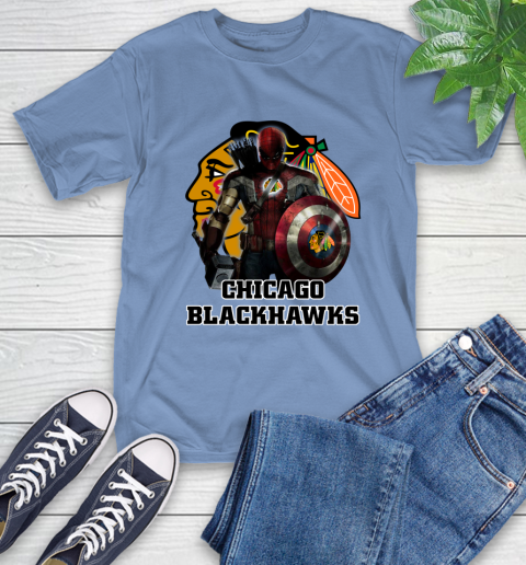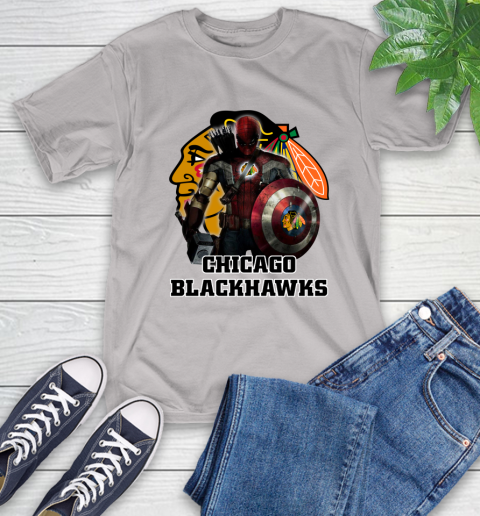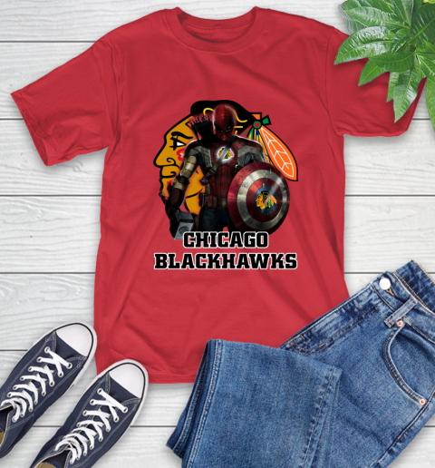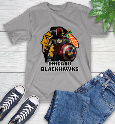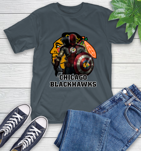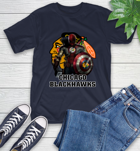 NHL Captain America Thor Spider Man Hawkeye Avengers Endgame Hockey Chicago Blackhawks T-Shirt