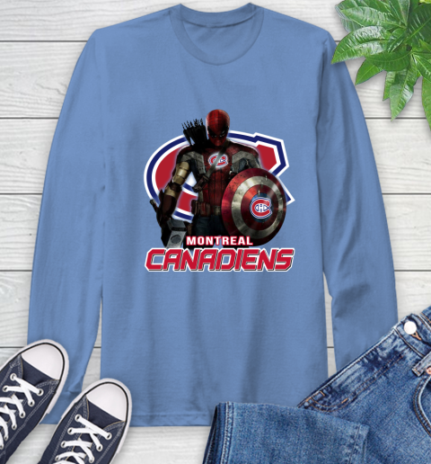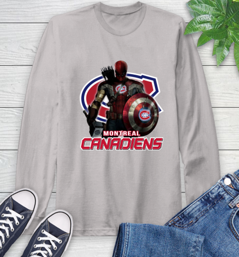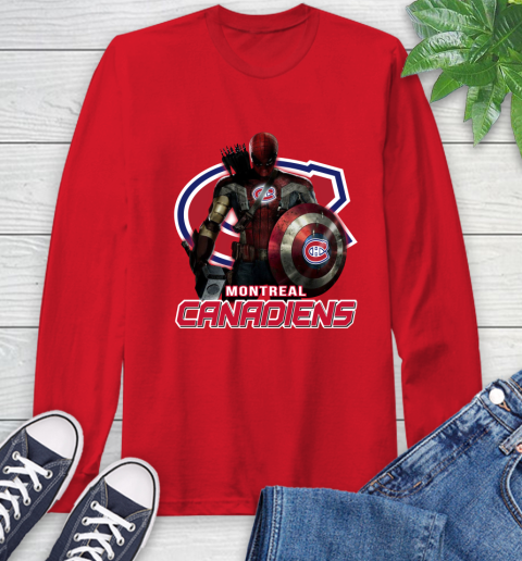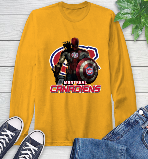 NHL Captain America Thor Spider Man Hawkeye Avengers Endgame Hockey Montreal Canadiens Long Sleeve T-Shirt