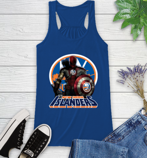 NHL Captain America Thor Spider Man Hawkeye Avengers Endgame Hockey New York Islanders Racerback Tank