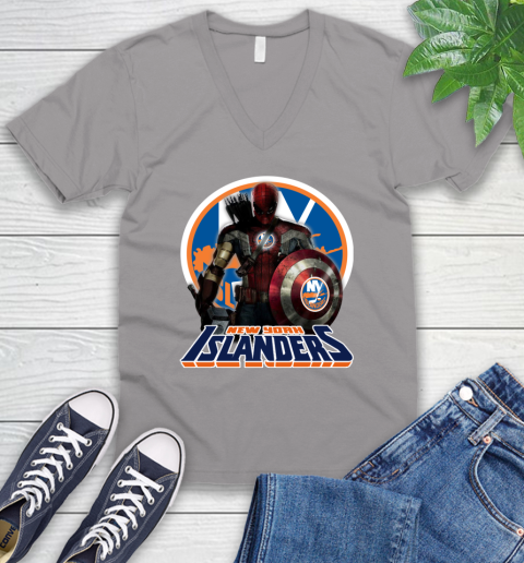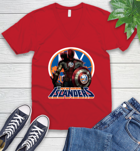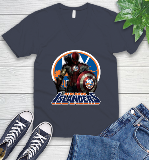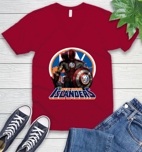 NHL Captain America Thor Spider Man Hawkeye Avengers Endgame Hockey New York Islanders V-Neck T-Shirt