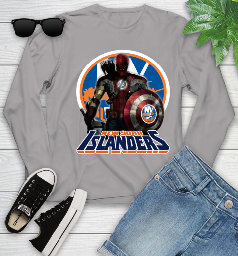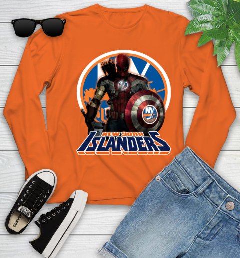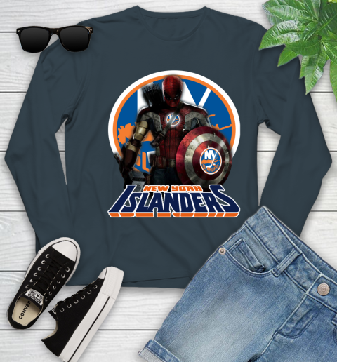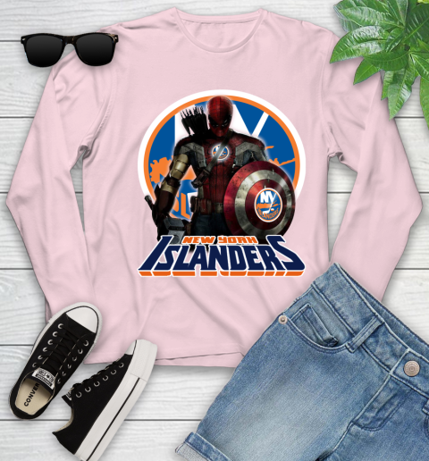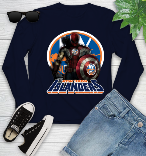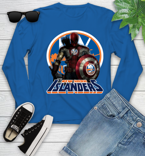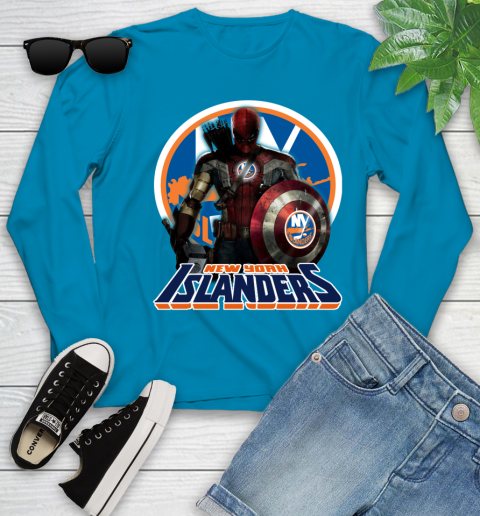 NHL Captain America Thor Spider Man Hawkeye Avengers Endgame Hockey New York Islanders Youth Long Sleeve