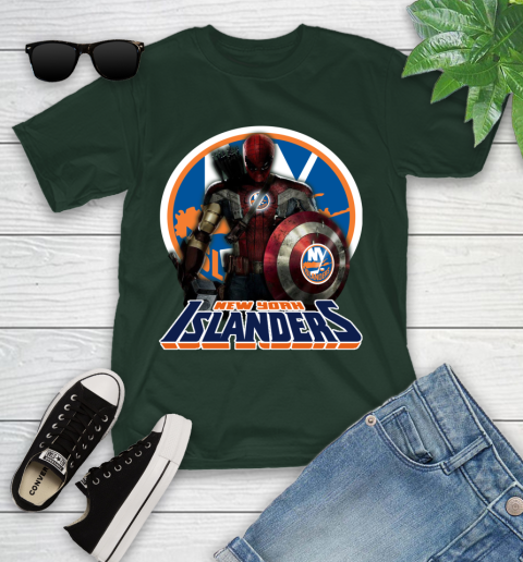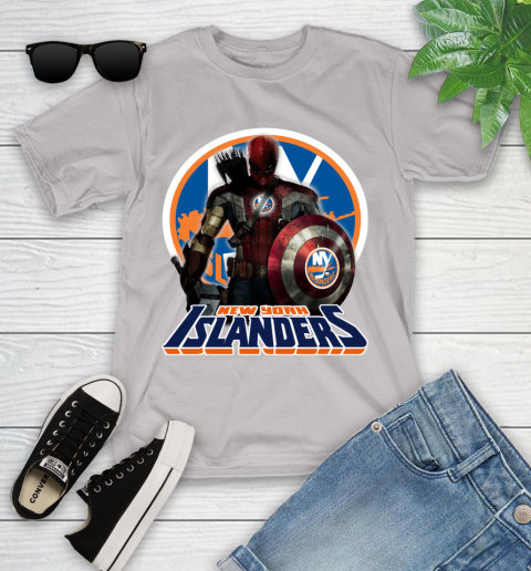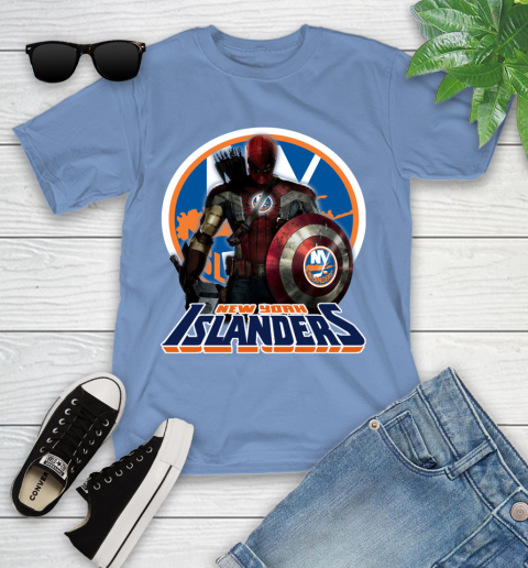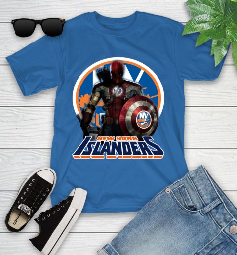 NHL Captain America Thor Spider Man Hawkeye Avengers Endgame Hockey New York Islanders Youth T-Shirt