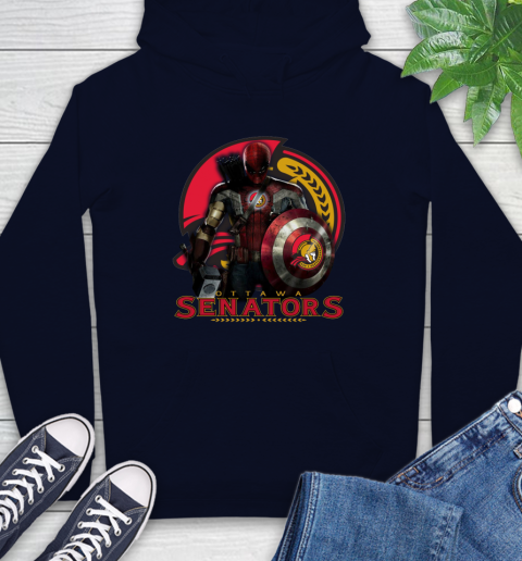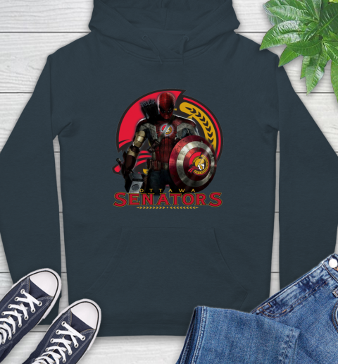 NHL Captain America Thor Spider Man Hawkeye Avengers Endgame Hockey Ottawa Senators Hoodie