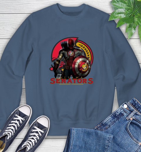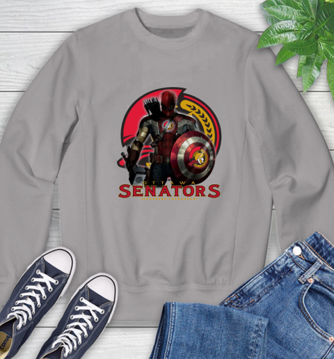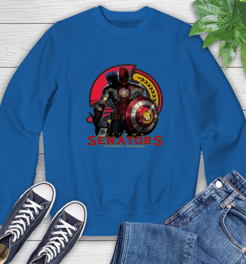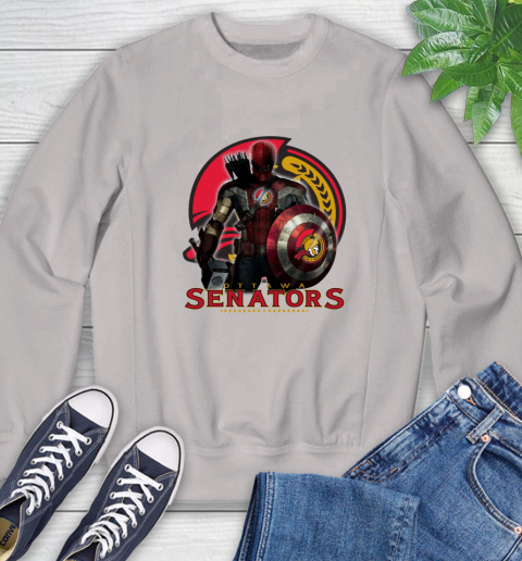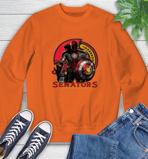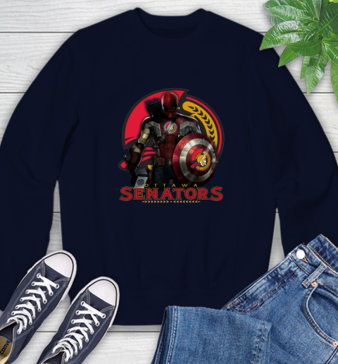 NHL Captain America Thor Spider Man Hawkeye Avengers Endgame Hockey Ottawa Senators Sweatshirt
