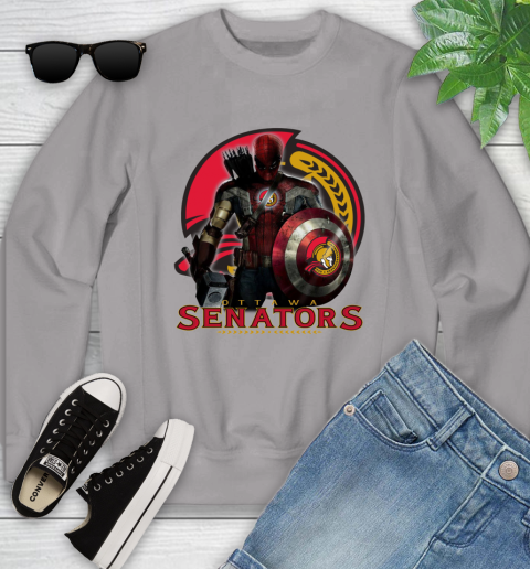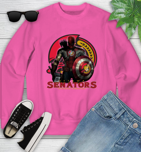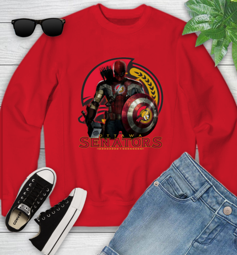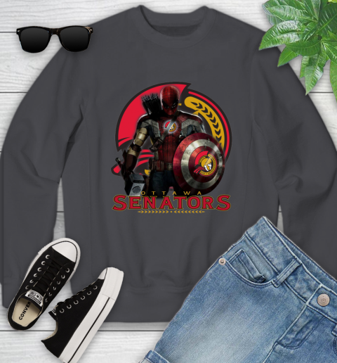 NHL Captain America Thor Spider Man Hawkeye Avengers Endgame Hockey Ottawa Senators Youth Sweatshirt