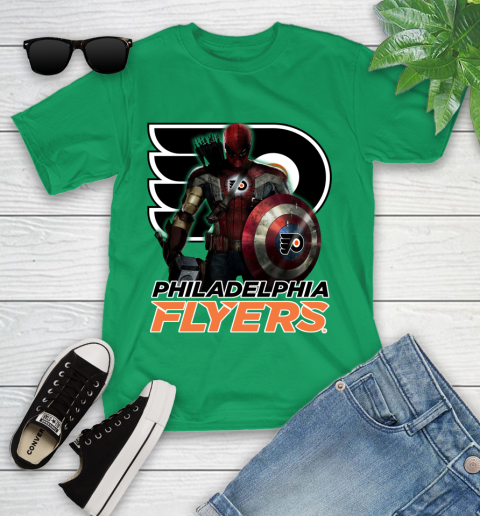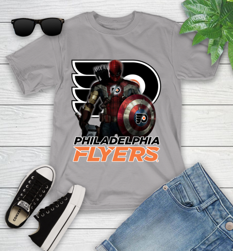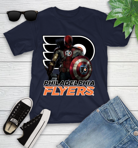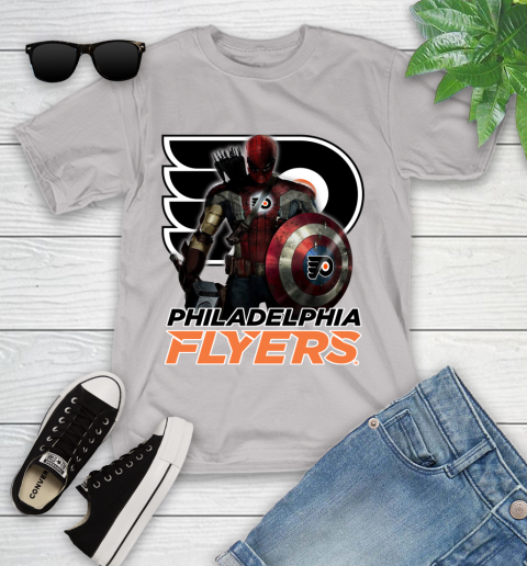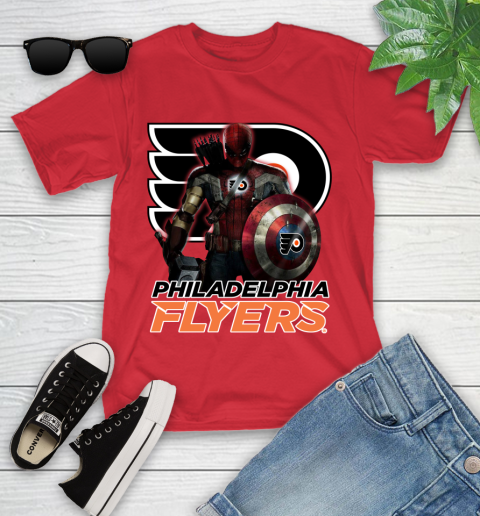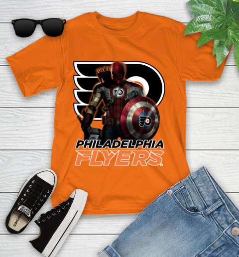 NHL Captain America Thor Spider Man Hawkeye Avengers Endgame Hockey Philadelphia Flyers Youth T-Shirt