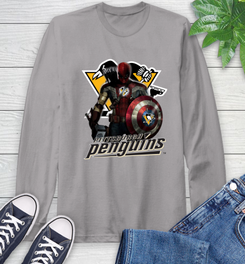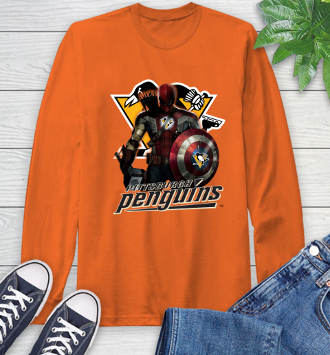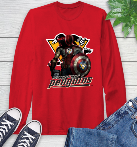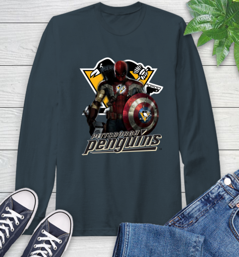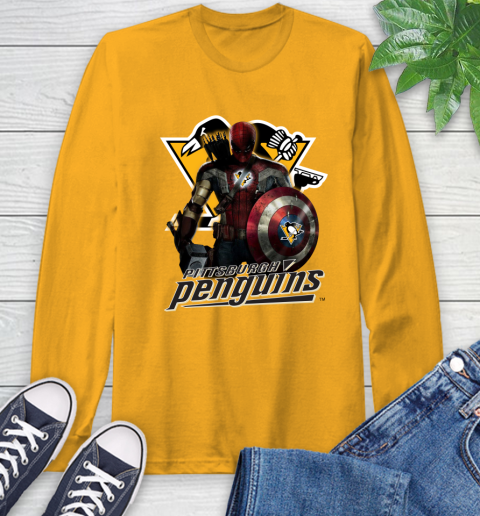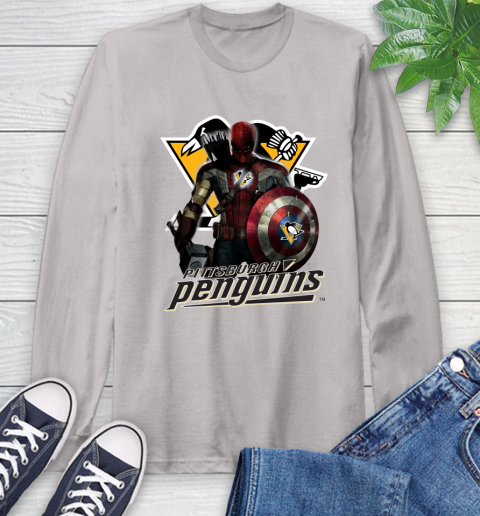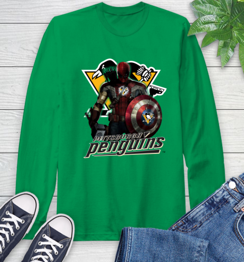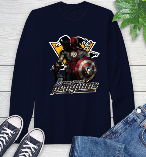 NHL Captain America Thor Spider Man Hawkeye Avengers Endgame Hockey Pittsburgh Penguins Long Sleeve T-Shirt