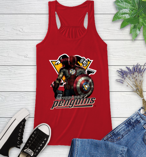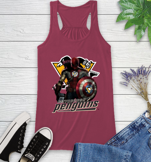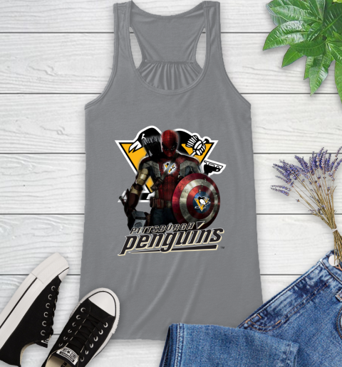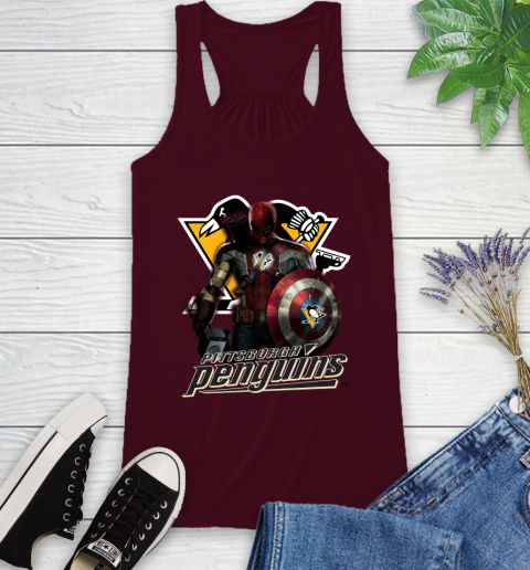 NHL Captain America Thor Spider Man Hawkeye Avengers Endgame Hockey Pittsburgh Penguins Racerback Tank