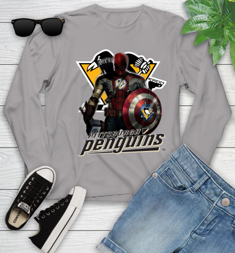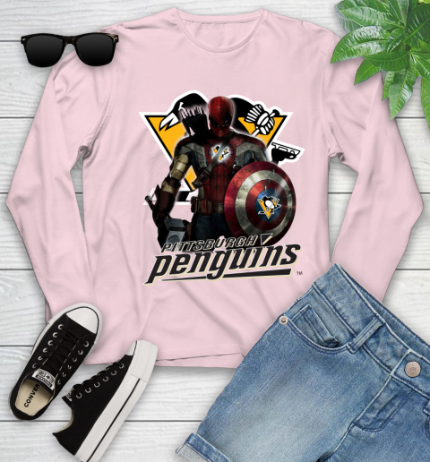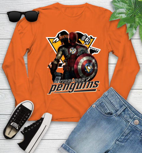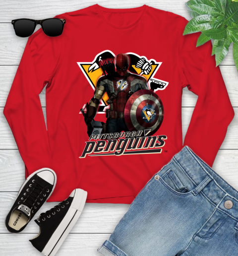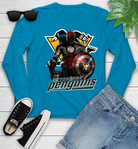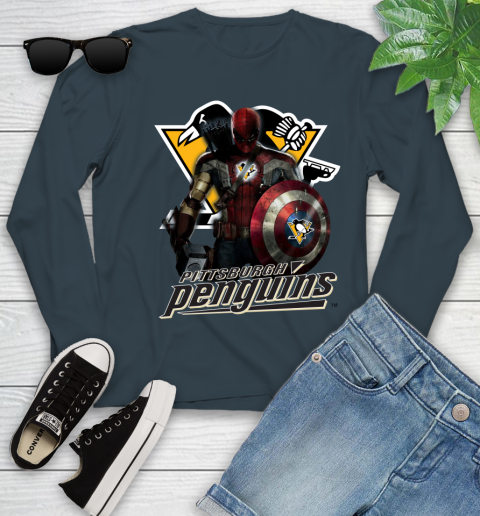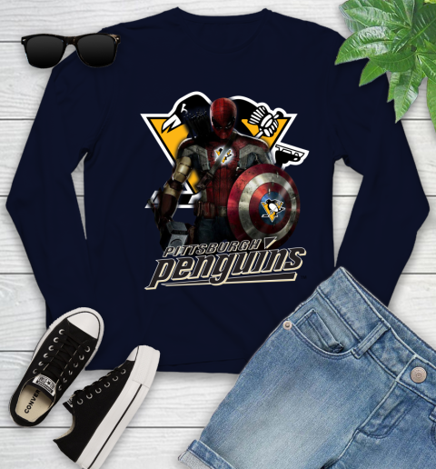 NHL Captain America Thor Spider Man Hawkeye Avengers Endgame Hockey Pittsburgh Penguins Youth Long Sleeve