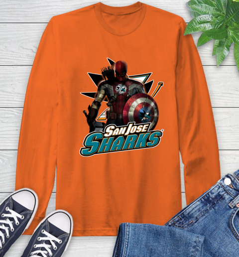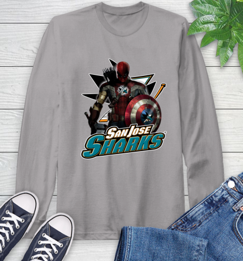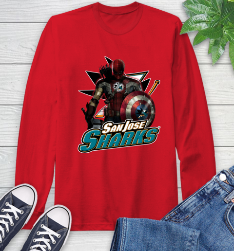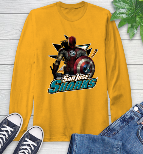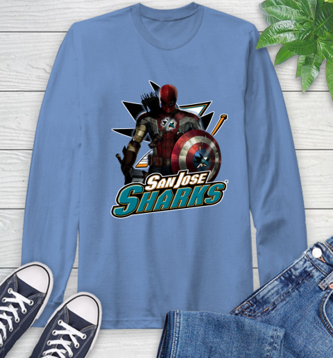 NHL Captain America Thor Spider Man Hawkeye Avengers Endgame Hockey San Jose Sharks Long Sleeve T-Shirt