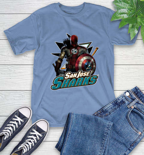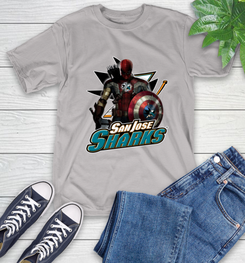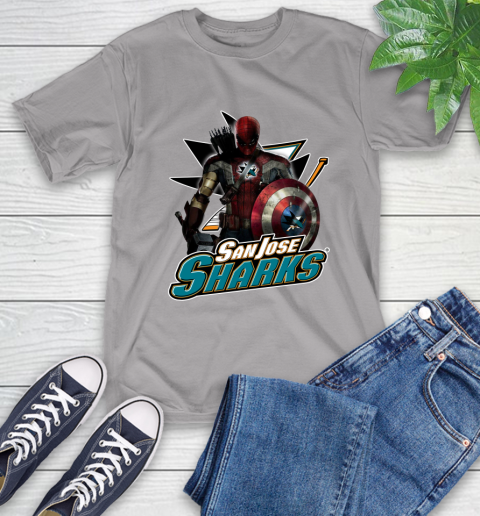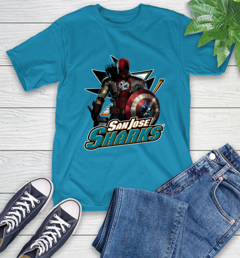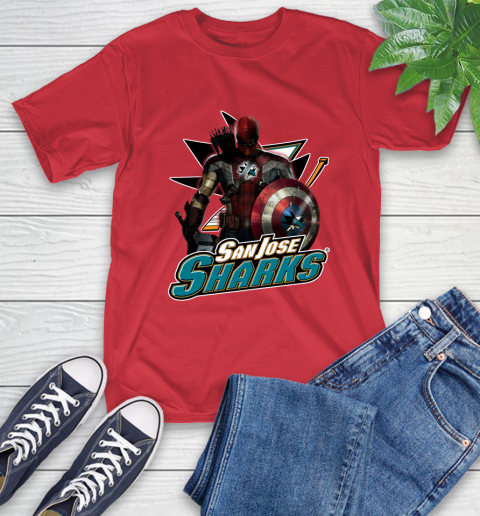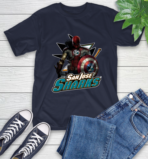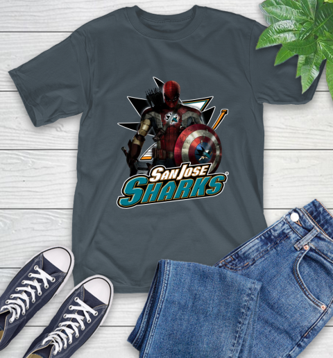 NHL Captain America Thor Spider Man Hawkeye Avengers Endgame Hockey San Jose Sharks T-Shirt