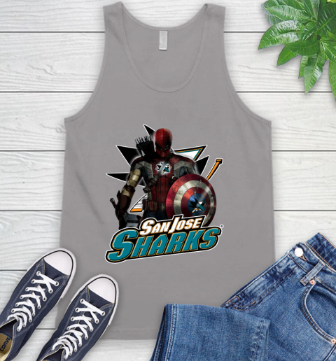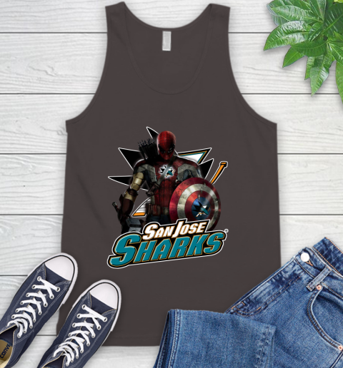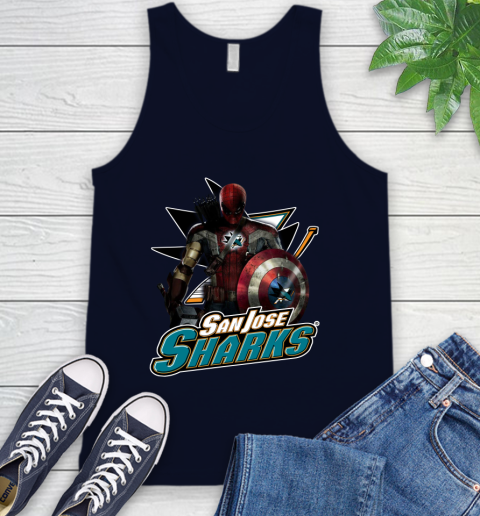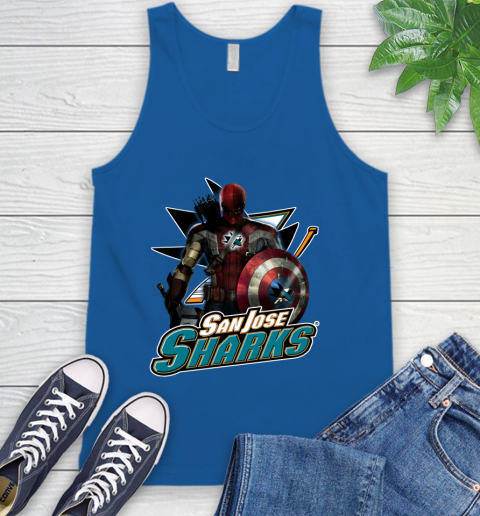 NHL Captain America Thor Spider Man Hawkeye Avengers Endgame Hockey San Jose Sharks Tank Top