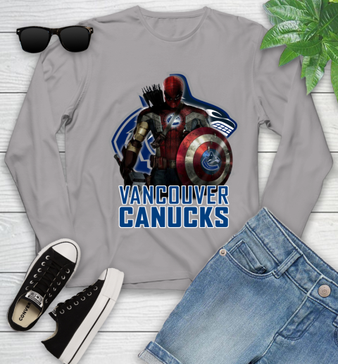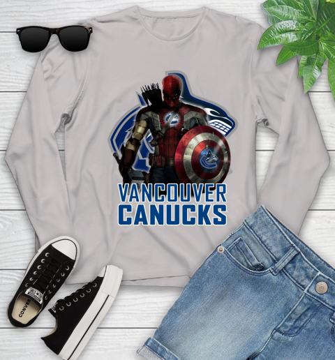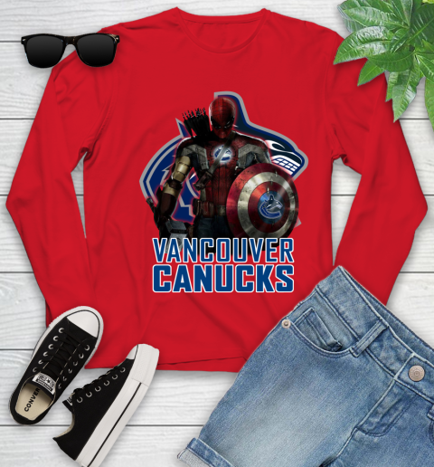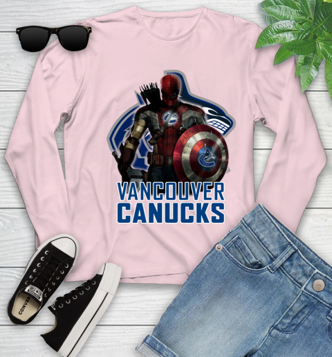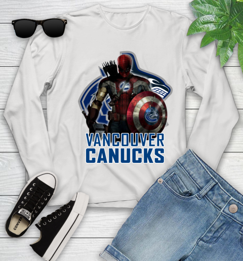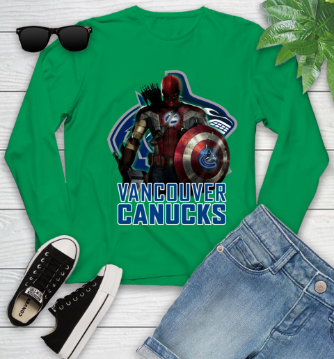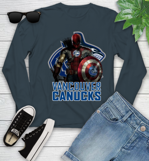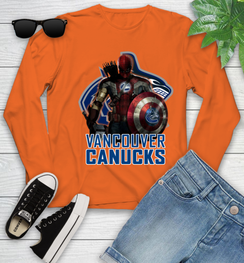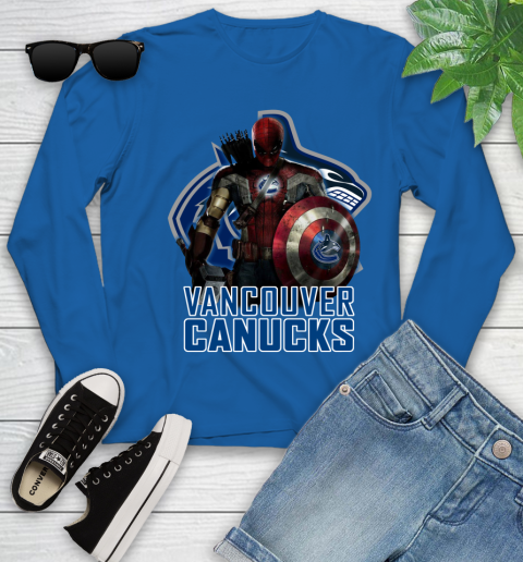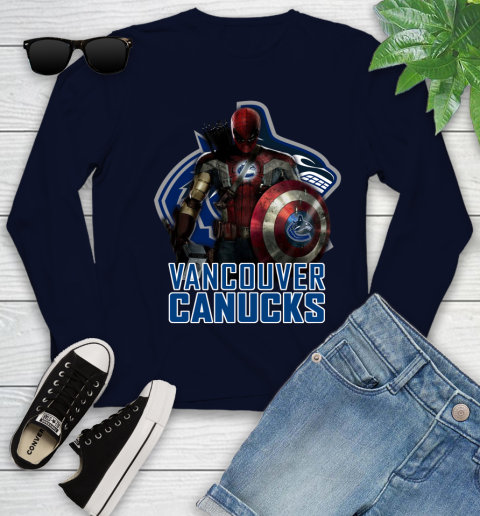 NHL Captain America Thor Spider Man Hawkeye Avengers Endgame Hockey Vancouver Canucks Youth Long Sleeve
