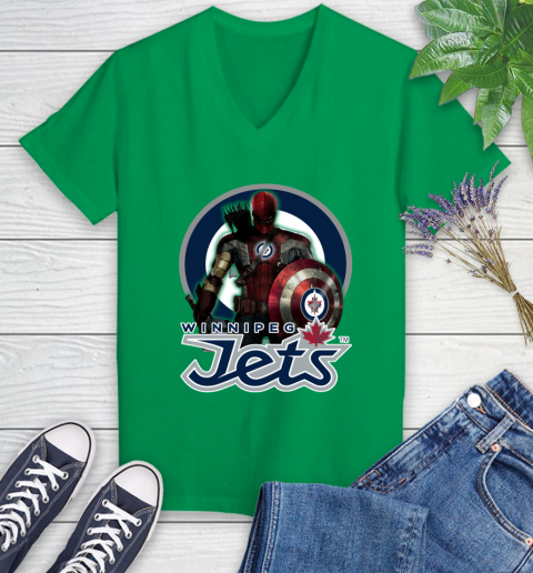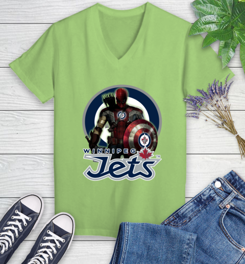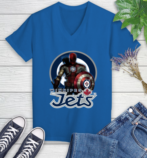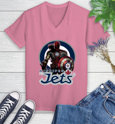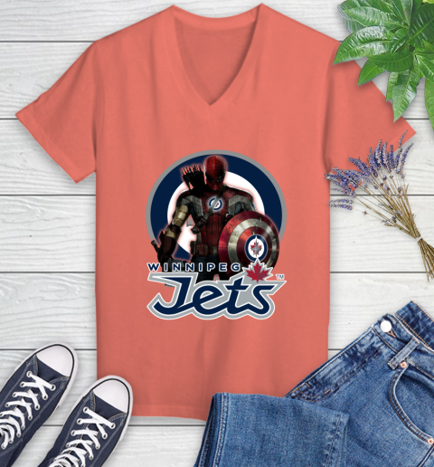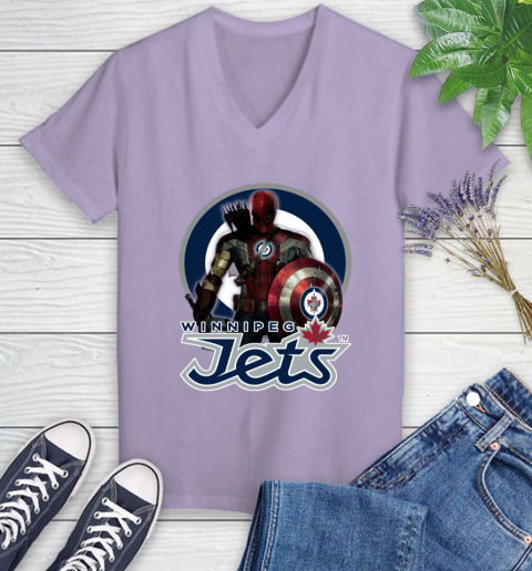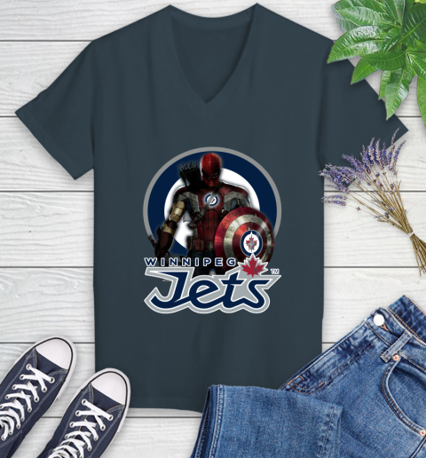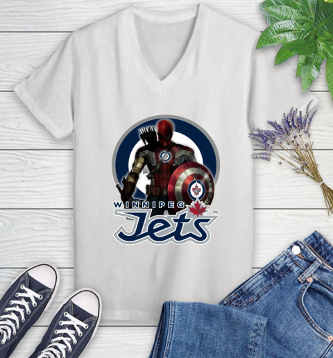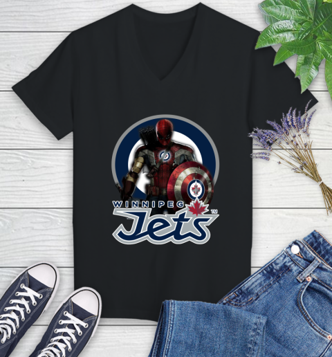 NHL Captain America Thor Spider Man Hawkeye Avengers Endgame Hockey Winnipeg Jets Women’s V-Neck T-Shirt