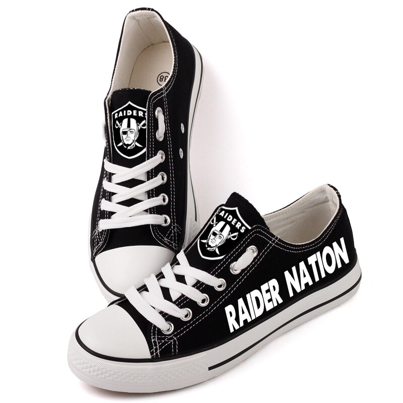 Oakland Raiders Limited Print NFL Football Fans Low Top Canvas Shoes Sport Sneakers T-DF45H