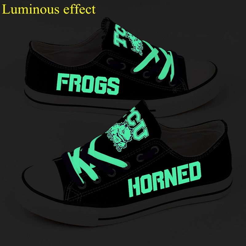 TCU Horned Frogs Limited Print NCAA College Students Luminous Low Top Canvas Shoes Sport Sneakers T-DV260HY