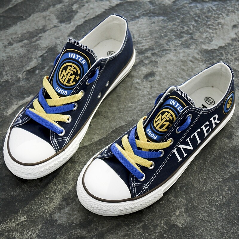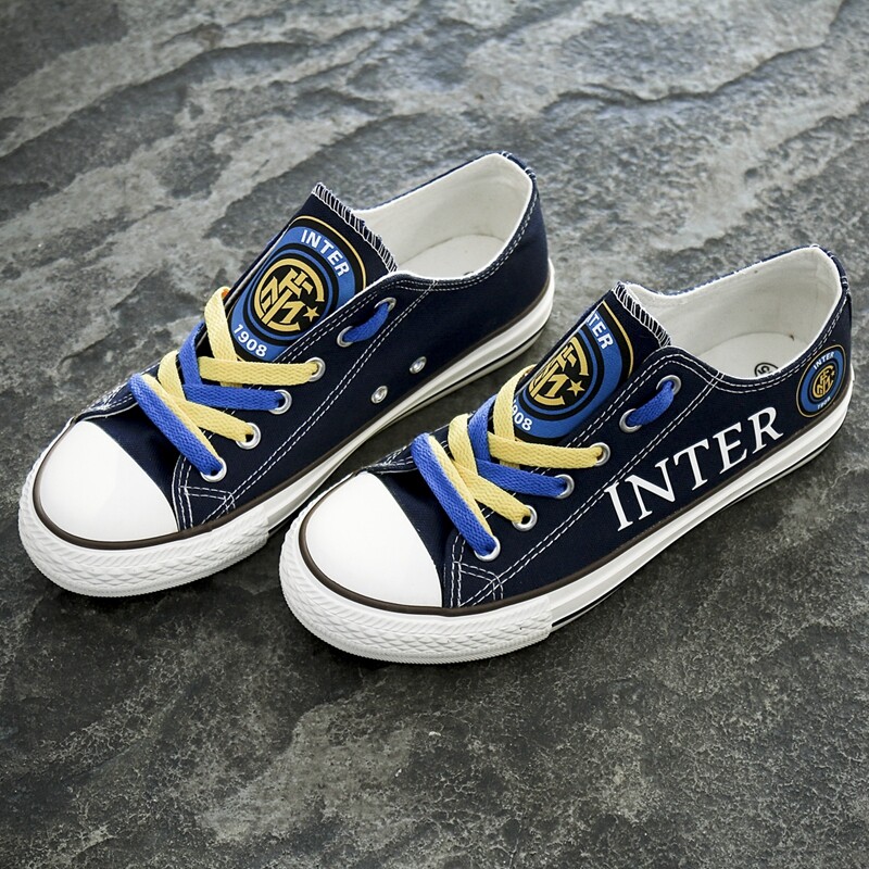 UEFA Soccer Fans Internazionale Milano Team Printed Canvas Shoes Adult Casual Flats Sport Sneakers Running Shoes T-D855L