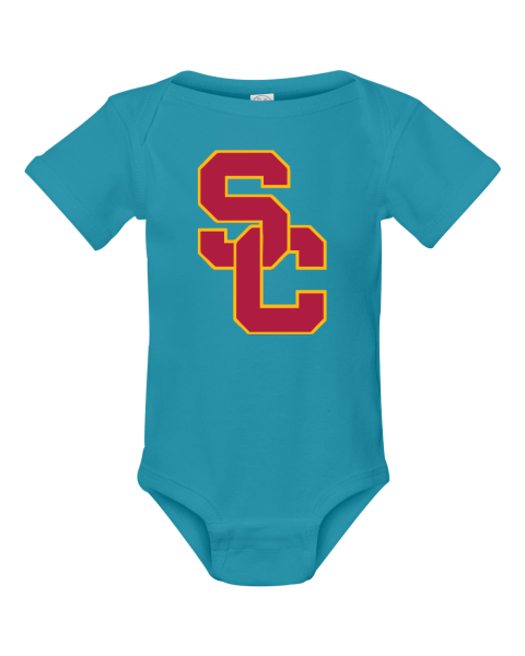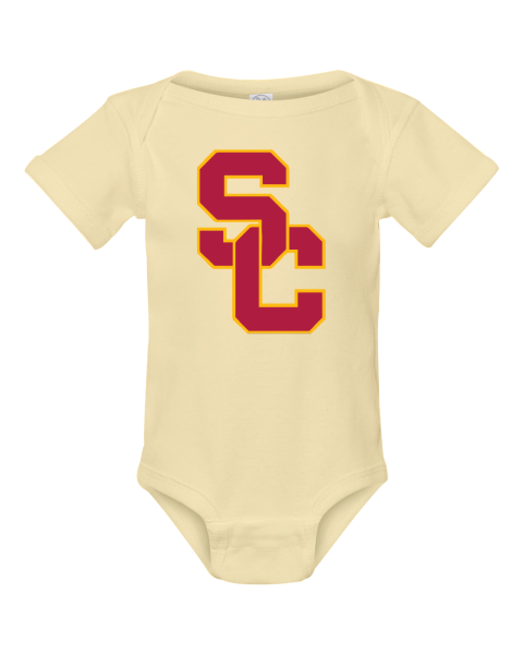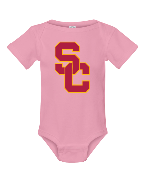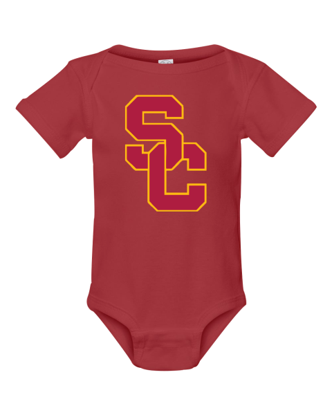 Custom USC Trojans Logo Short Sleeve Baby Bodysuit