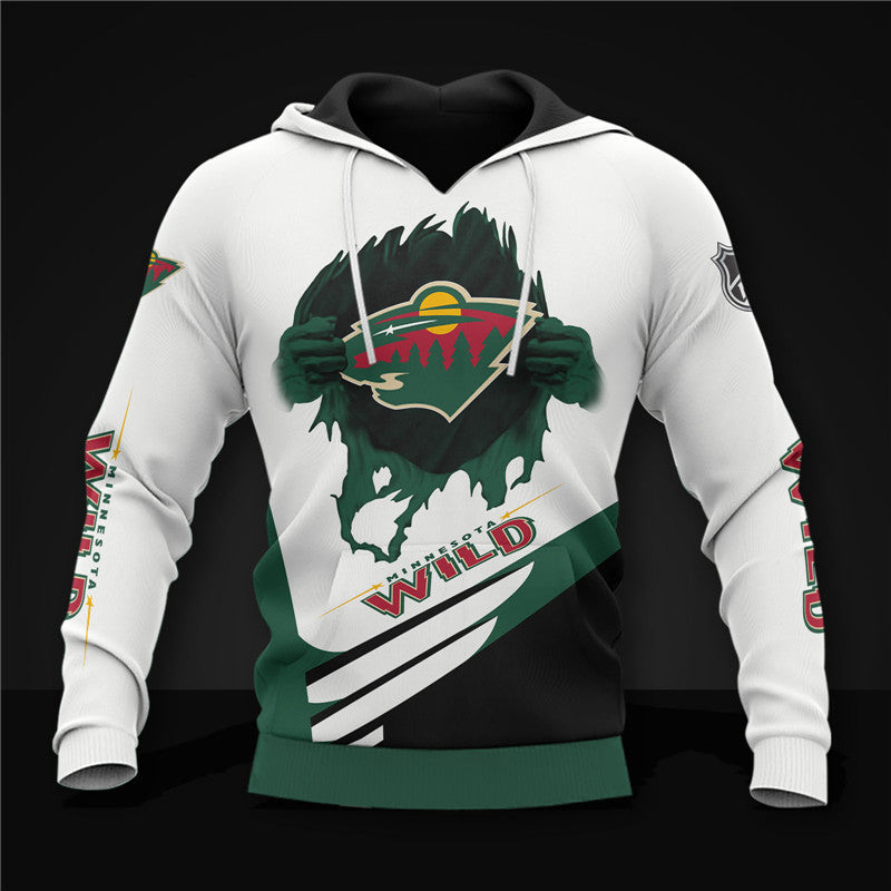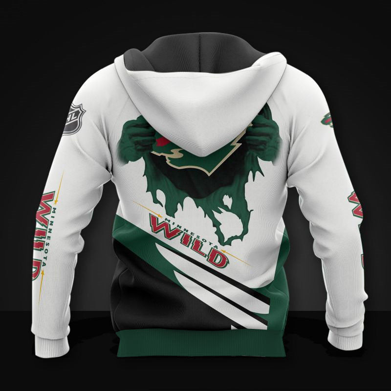 White Minnesota Wild Zipper Hoodies, Pullover Print 3D NHL